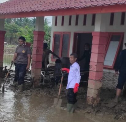 Kegiatan ini turut melibatkan Kepala Puskesmas Jangka beserta seluruh staf sebagai bentuk kepedulian bersama terhadap fasilitas kesehatan yang terdampak banjir.