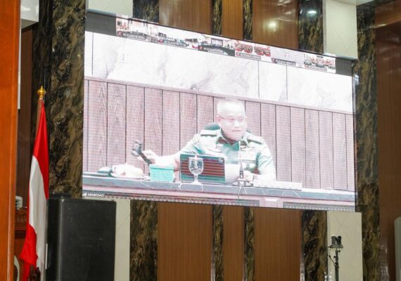SURABAYA, SRN – Pangdam V/Brawijaya, Mayjen TNI Rudy Saladin, M.A., bersama para pejabat utama Kodam mengikuti kegiatan Taklimat Awal Penyampaian Program Kerja dan Anggaran (Progjagar) Tahun Anggaran 2026 Rapim TNI AD melalui sarana video conference di Gedung Balai Prajurit Raden Wijaya, Selasa (20/01/2026).