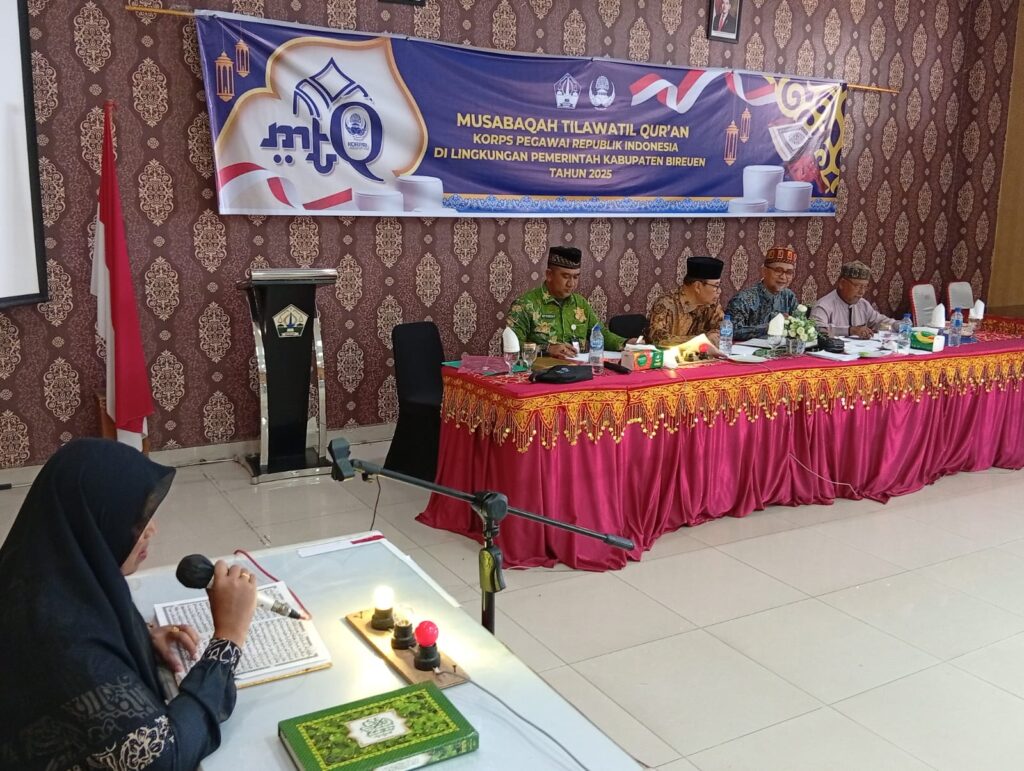 SRN.com-Bireuen – Pemerintah Kabupaten Bireuen melalui Bidang Pengadaan, Pemberhentian dan Informasi (BKPSDM) kembali menggelar Musabaqah Tilawatil Qur’an (MTQ) Korps Pegawai Republik Indonesia (KORPRI) di lingkungan Pemerintah Kabupaten Bireuen Tahun 2025. Kegiatan bernuansa religius ini diadakan sebagai wujud komitmen pemerintah daerah dalam menumbuhkan kecintaan terhadap Al-Qur’an sekaligus mempererat tali silaturahmi dan ukhuwah Islamiyah di antara sesama ASN dan P3K.