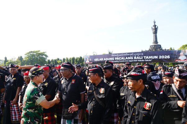 DENPASAR, seputarrakyat-news.com – Pangdam IX/Udayana Mayjen TNI Piek Budyakto menghadiri Gelar Agung (Apel Besar) Pecalang Bali Tahun 2026 yang digelar di Lapangan Puputan Margarana (Niti Mandala), Renon, Denpasar Timur, Sabtu (07/03/26). Kegiatan yang diikuti ribuan Pecalang dari seluruh Bali ini menjadi simbol kuat sinergi antara aparat negara dengan kearifan lokal dalam menjaga keamanan dan ketertiban masyarakat.