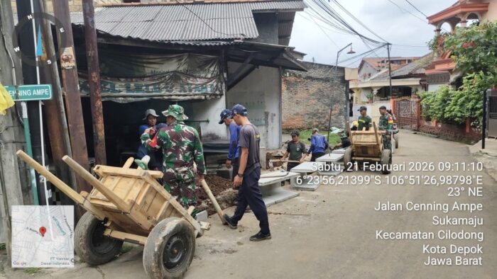 DEPOK, seputarrakyat-news.com – Program TMMD Ke-127 TA 2026 Kodim 0508/Depok terus bergerak progresif. Pada Sabtu, 21 Februari 2026, pengerjaan pembuatan drainase sepanjang 200 meter di Jalan Bojong Lio RT 03/28, Kelurahan Sukamaju, Kecamatan Cilodong, telah mencapai 50 persen.